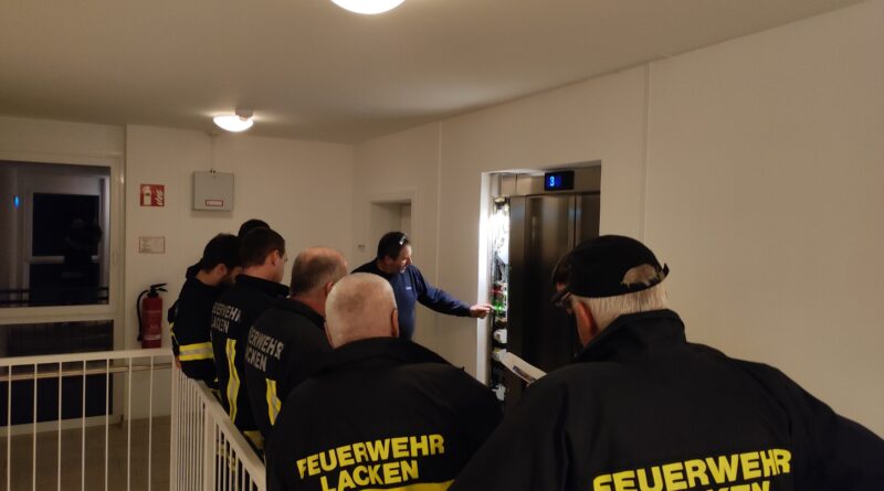 Zu Beginn wurden die Übungsteilnehmer in zwei gleich große Gruppen aufgeteilt. Während eine Gruppe im Feuerwehrhaus verblieb, begab sich die andere Gruppe in zwei Wohnhäuser in der Schatzsiedlung. Dort wurde mithilfe eines Technikers der Liftfirma KONE eine Personenbefreiung aus dem Lift sowohl theoretisch durchbesprochen als auch praktisch beübt. Da es in unserem Einsatzgebiet mittlerweile sehr viele Wohnbauten mit Liften verschiedener Liftfirmen gibt, ist es für uns wichtig, über jede Liftanlage genaustens Bescheid zu wissen, um im Ernstfall rasch helfen zu können.