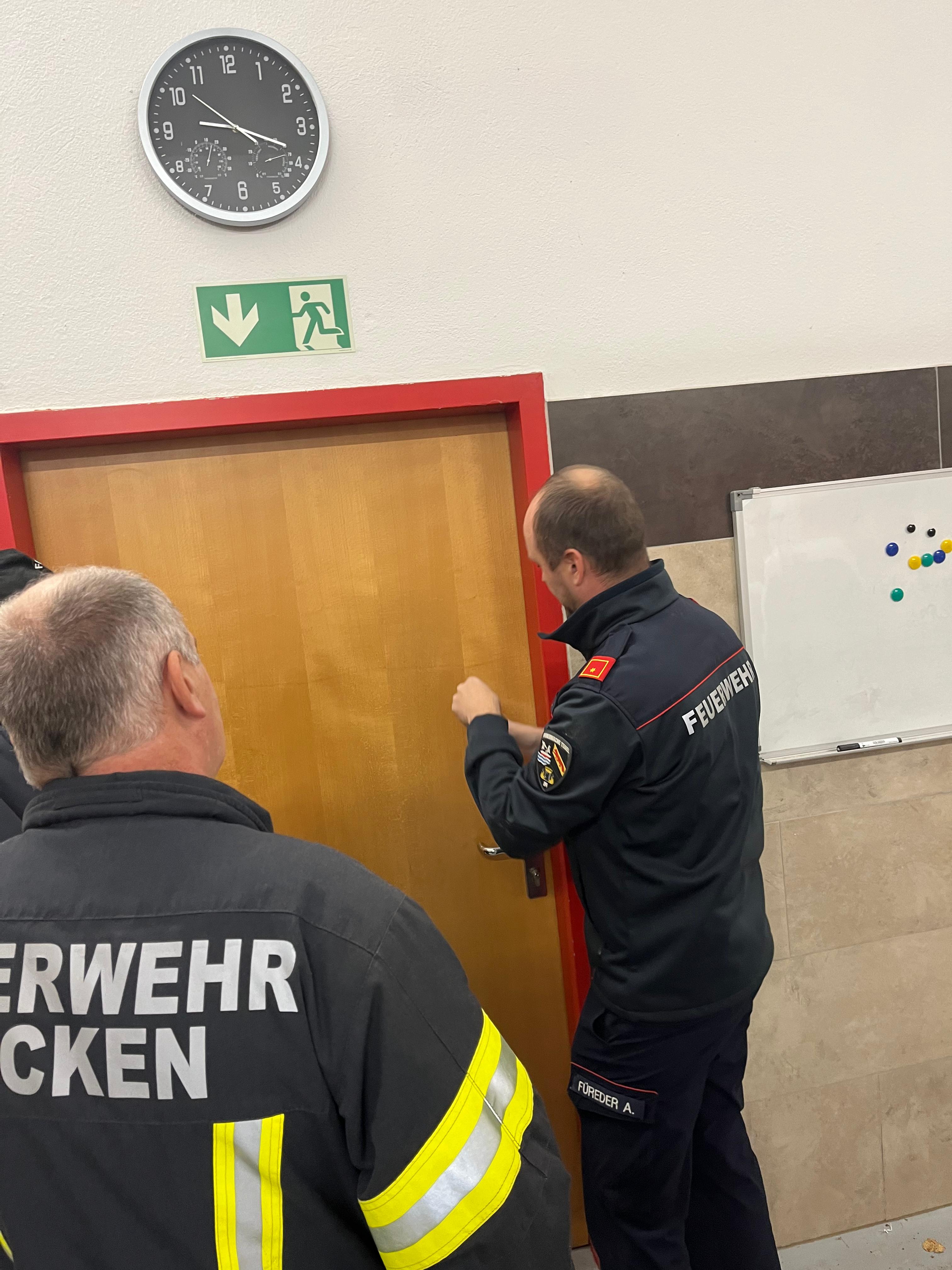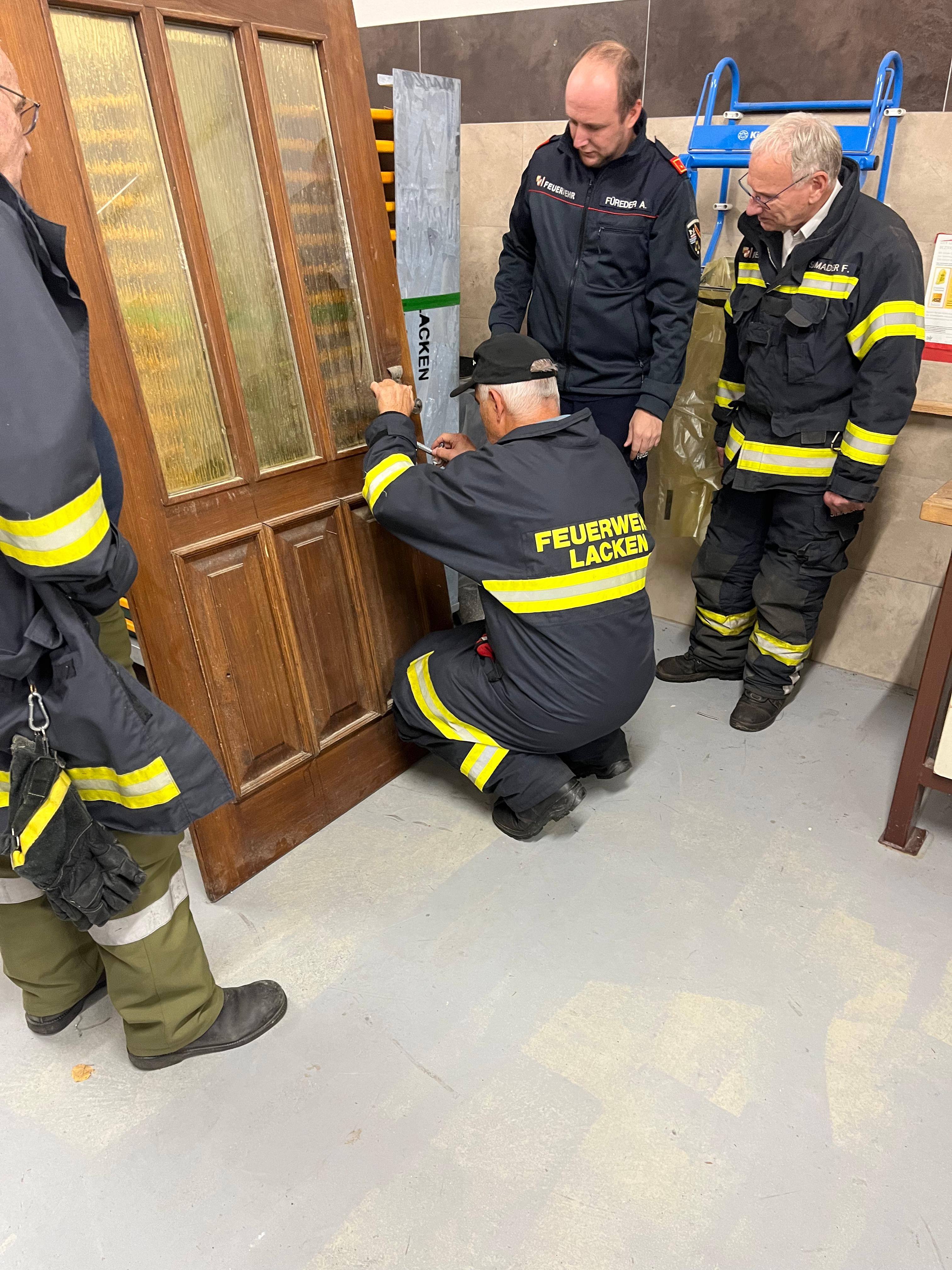 Die andere Gruppe wurde währenddessen im Feuerwehrhaus über die verschiedenen Möglichkeiten der Türöffnung geschult. Auch dies erfolgte zuerst in theoretischer Form und anschließend wurde das Erlernte in die Praxis umgesetzt. Danach erfolgte ein Wechsel der beiden Gruppen.