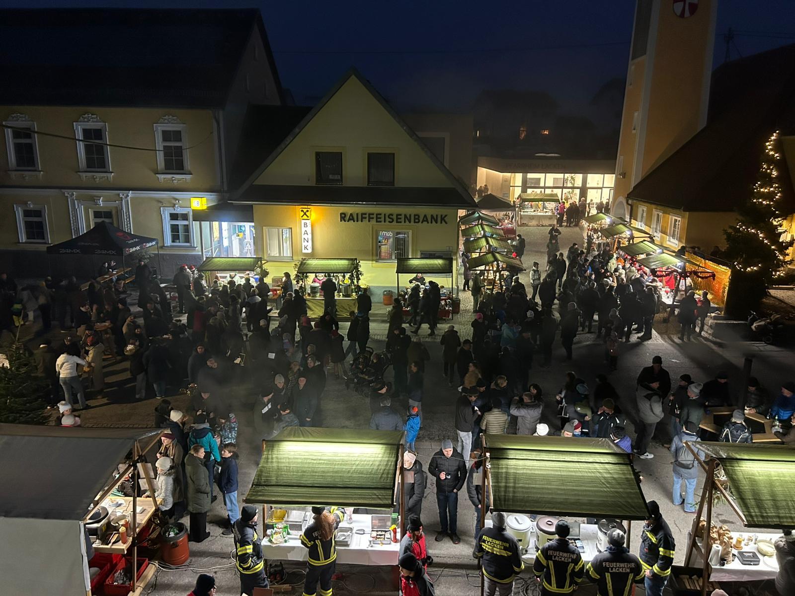 Am Sonntag, 14. Dezember 2025 fand im Ortszentrum von Lacken der alljährliche Adventmarkt statt. Bereits um 10:00 Uhr vormittags startete die Freiwillige Feuerwehr Lacken mit den Aufbauarbeiten.
