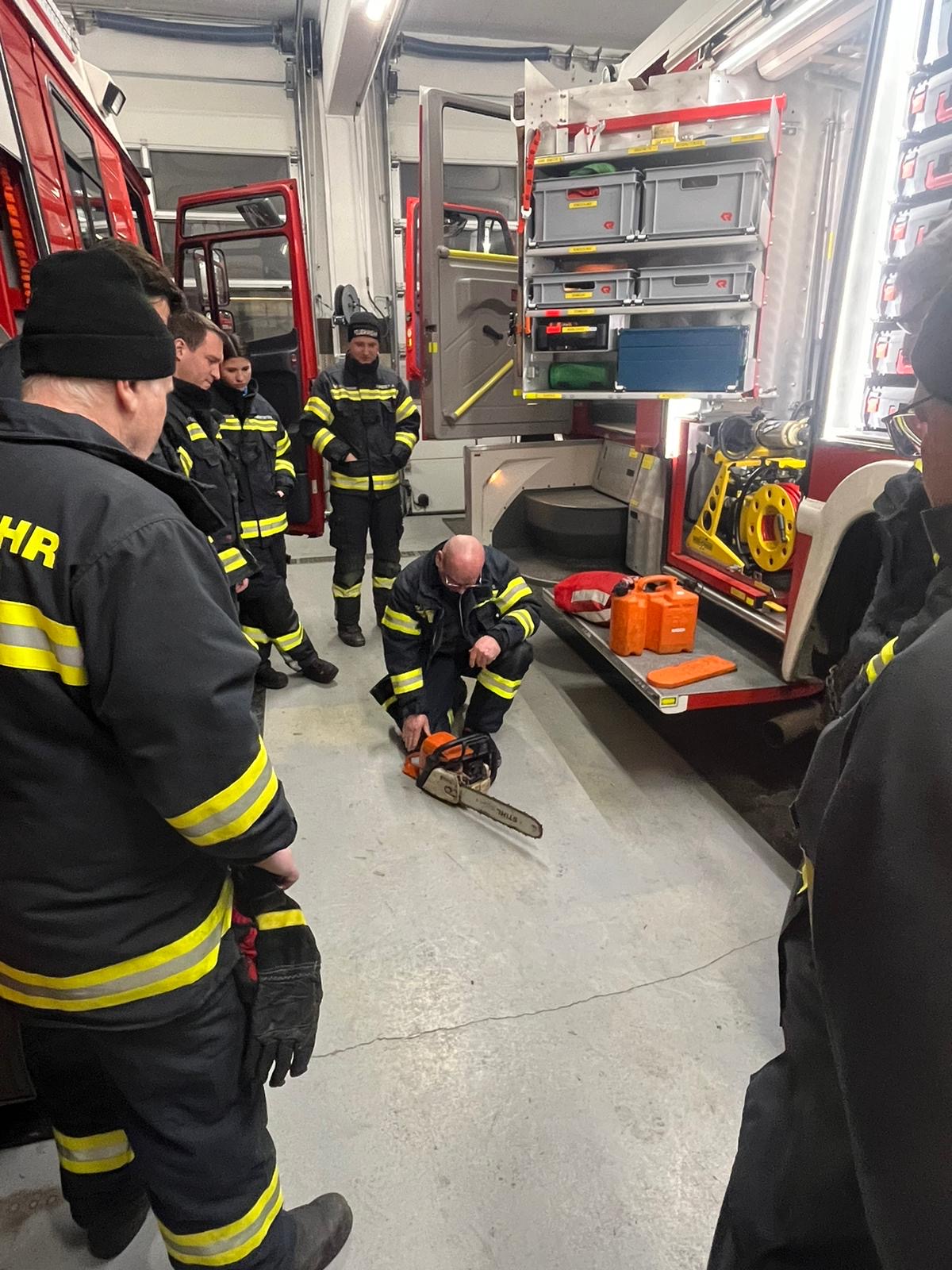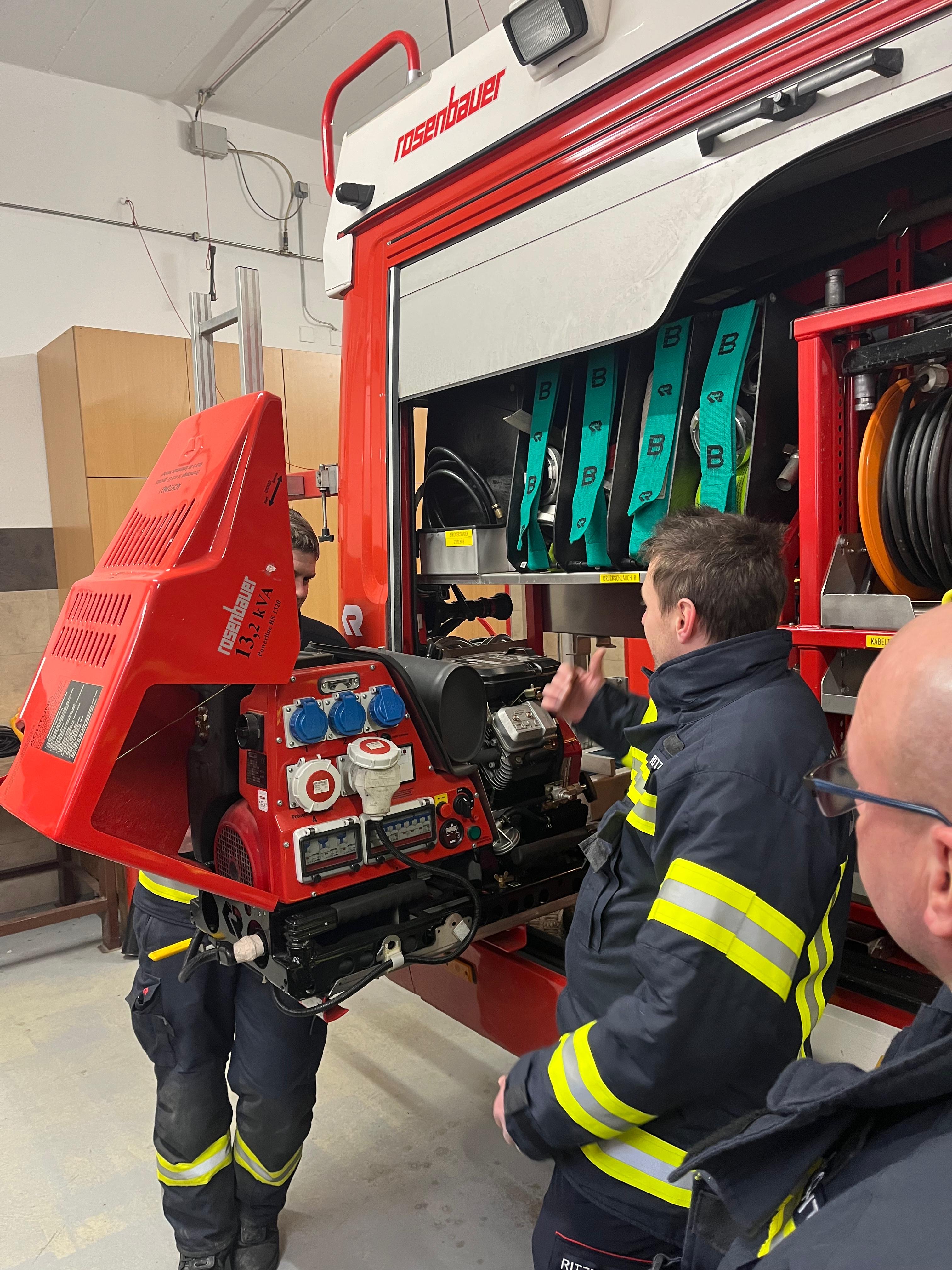 Bei dieser Übung wurden alle motorbetriebenen Geräte unserer beiden Fahrzeuge zuerst theoretisch erklärt und anschließend in Betrieb genommen. Zu unseren motorbetriebenen Geräten gehören unter anderem das Notstromaggregat, die Tragkraftspritze, das hydraulische Rettungsgerät, die Motorsägen, die Tauchpumpen, der Hochleistungslüfter und die Seilwinden.
